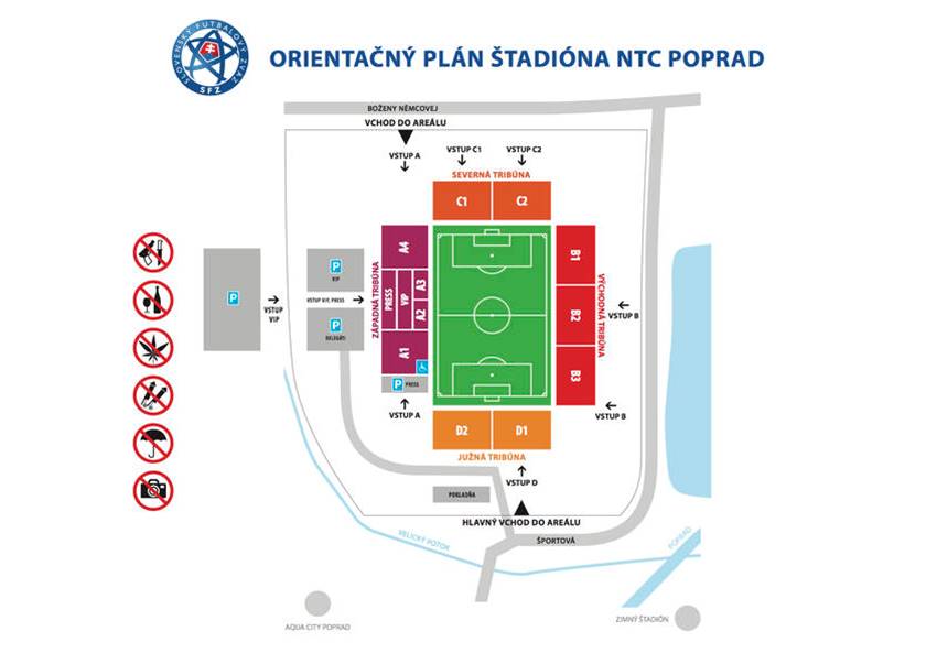 Rovnako žiadame fanúšikov, aby dodržiavali pokyny usporiadateľskej služby a riadili sa návštevným poriadkom štadióna, viď. zoznam zakázaných predmetov. Upozorňujeme, že na štadión nebudú vpustené osoby pod vplyvom alkoholu či iných návykových látok.